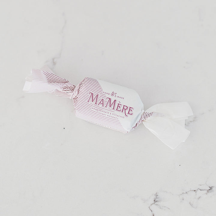 French style honey nougat, laced with tangy Pomegranate concentrate & studded with roasted Pistachio nuts.