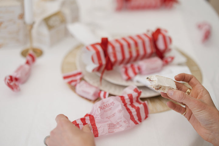 Add a pop of sweetness to your holiday table with our pink and red Christmas cracker — filled with three festive nougat twists. Each bite is soft, chewy, and perfectly merry, wrapped in holiday colour and joy. A little moment of sweetness to share (or secretly keep for yourself)!